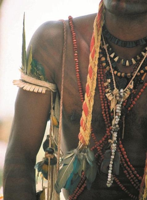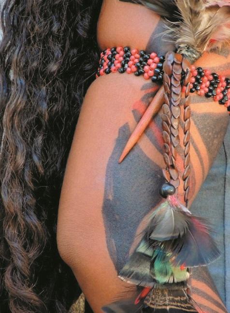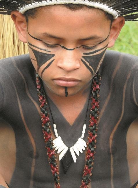 Soma-se às cores e formas dos desenhos e das pinturas corporais, os adornos que contribuem para sua identidade cultural, imprescindíveis nos rituais. Isso, com destaque às danças circulares, praticadas há séculos, simbolizando sua unidade e totalidade. Por sinal, nas aldeias, hoje mais do que nunca, é cada vez maior o número de crianças e jovens que participam desses ritos, nos quais a música e a dança têm igualmente enorme significado.