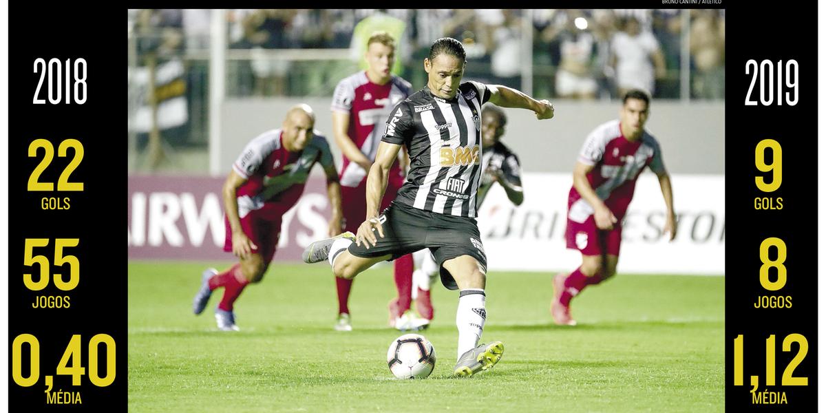 Os números de 2019 o credenciam a uma temporada bem superior. Além disso, este ano ele tem sombra, pois seu reserva, Alerrandro, que ainda não jogou pela Libertadores, mostra serviço no Campeonato Mineiro, onde divide a artilharia com Ricardo Oliveira.