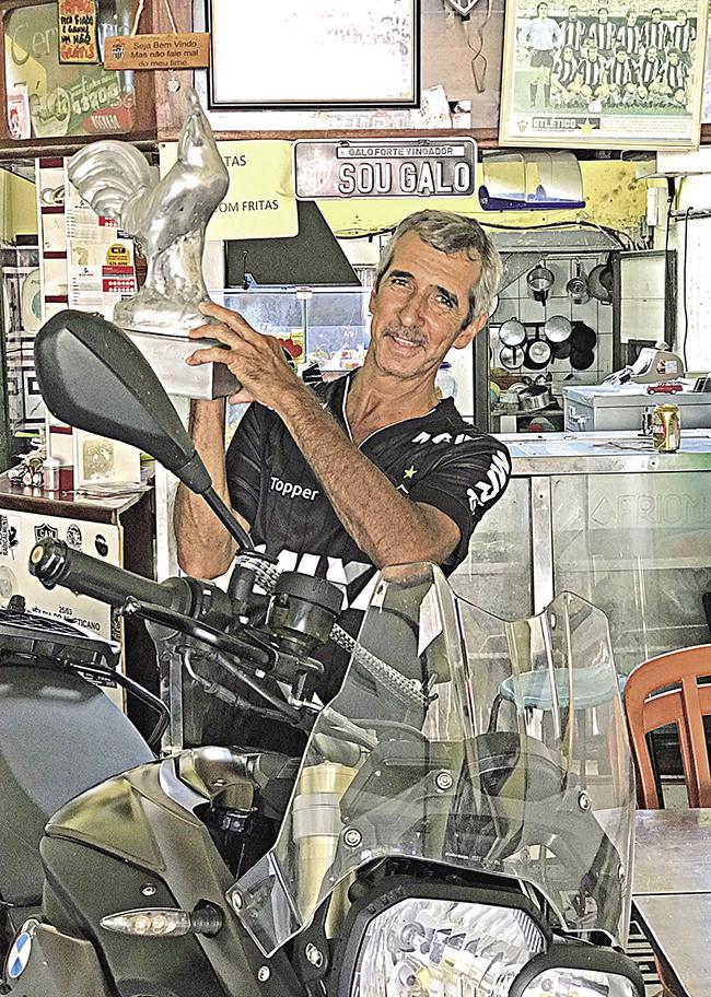 No restaurante que herdou do pai, Miranda deixa claro o amor que nutre pelo alvinegro. Quadros, fotografias, faixas e objetos tomam conta do estabelecimento Na garagem, duas motos de grande porte mostram que o coração do comerciante, dez anos depois da viagem, continua dividido entre o futebol e a velocidade.