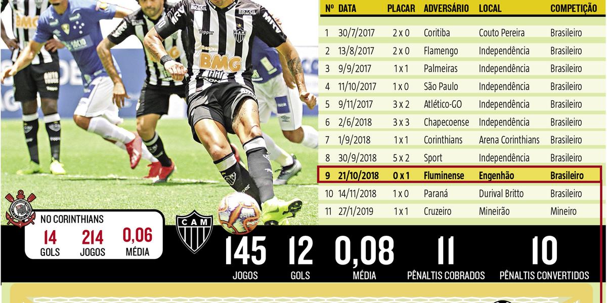 Diante do Cruzeiro, uma responsabilidade já habitual para o camisa 6. Precisa salvar o Atlético de um resultado ruim no papel de cobrador oficial de pênaltis do clube. Diante do xará goleiro, Fábio Santos empatou o clássico ao chutar rasteiro, no meio. Local inédito de um total de 11 cobranças e 10 acertos para o lateral-esquerdo.