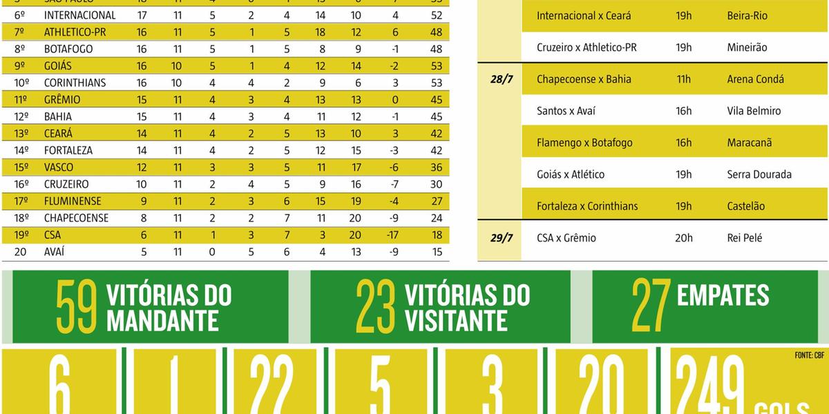 Em compensação, empate ou derrota podem significar a perda de até duas posições, para Fluminense e Chapecoense.