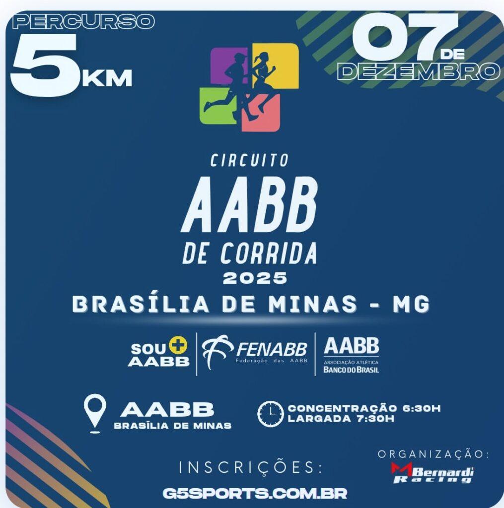 A cidade de Brasília de Minas se prepara para receber, no dia 7 de dezembro de 2025, a tradicional Corrida da AABB, que promete reunir atletas, corredores amadores e entusiastas do esporte em um percurso de 5 km. O evento, já consolidado no calendário esportivo local, reforça a importância da atividade física e da convivência comunitária. A largada está prevista para as 7:30 hs, com concentração na sede da Associação Atlética Banco do Brasil (Avenida Bias Fortes, 265), onde os participantes serão recebidos com animação e estrutura completa. A prova percorrerá ruas centrais da cidade, permitindo que o público acompanhe de perto a performance dos atletas. A organização destaca que haverá suporte com pontos de hidratação e equipe médica durante todo o percurso. As inscrições já poderão ser feitas no site G5 Sports. O evento promete encerrar o ano esportivo de Brasília de Minas com energia positiva e muita emoção. Participem!