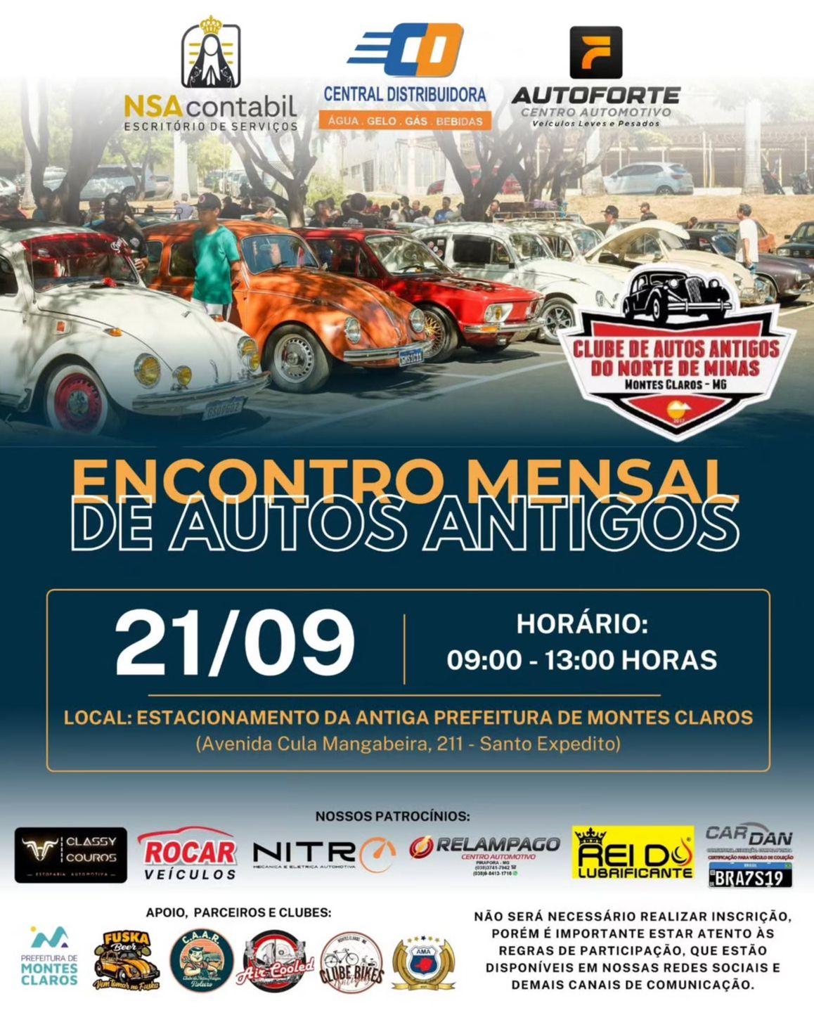 Montes Claros se prepara para receber mais um grande encontro de autos antigos neste próximo domingo, dia 21 de setembro, reunindo apaixonados por clássicos sobre rodas. O evento promete movimentar a cidade com exposição de veículos que marcaram gerações. Modelos raros, restaurados com cuidado e preservando a história do automobilismo, estarão à disposição do público. Além da mostra, haverá espaço para troca de experiências entre colecionadores e curiosos. Os visitantes terão a oportunidade de conhecer de perto carros que fizeram sucesso nas décadas de 50, 60, 70 e 80. A expectativa é atrair turistas de toda a região norte-mineira. O encontro valoriza a cultura automotiva e preserva a memória de veículos históricos. O evento acontecerá a partir das 9 hs no estacionamento da antiga prefeitura, com acesso gratuito. Uma ótima chance de celebrar tradição, paixão e estilo.