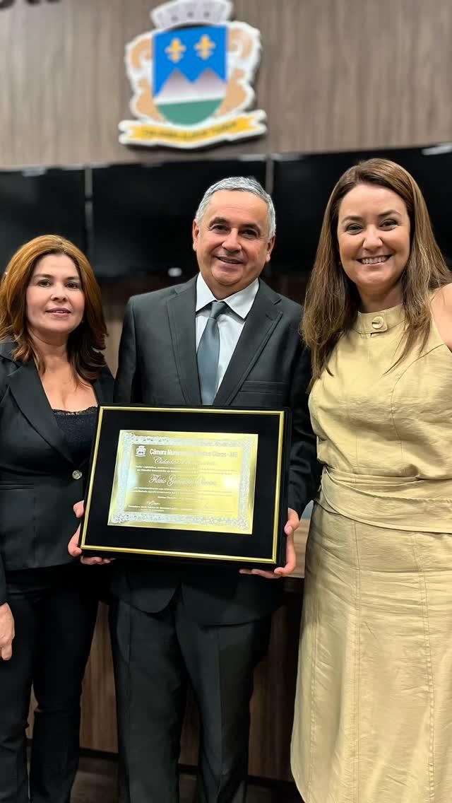 A Câmara Municipal de Montes Claros realizou, na última segunda-feira (1º), uma sessão solene marcada por emoção e reconhecimento, que consagrou o sucesso da homenagem ao professor Flávio Gonçalves Oliveira, presidente da Sociedade Rural de Montes Claros. Na ocasião ele recebeu o título de Cidadão Benemérito em virtude de sua destacada trajetória acadêmica como doutor em Engenharia Agrícola, pesquisador da UFMG e defensor do desenvolvimento regional. A homenagem foi de autoria da vereadora Maria Helena de Lopes (MDB). Autoridades políticas, lideranças do agronegócio, entidades de classe, familiares e amigos estiveram presentes, reforçando a relevância de sua contribuição para o fortalecimento do setor agropecuário no Norte de Minas.