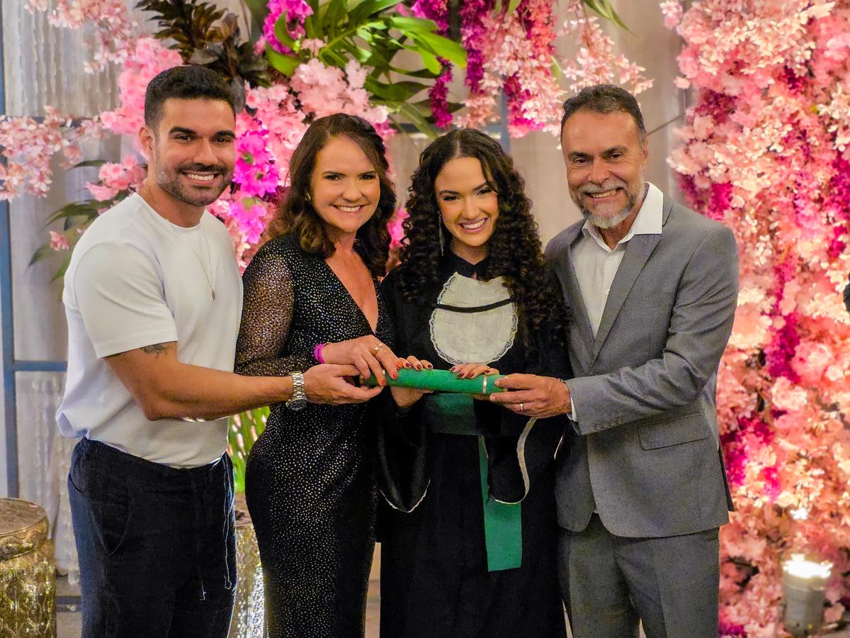 A semana foi especial para Maria Clara Bandeira Ribas, que vive um dos momentos mais marcantes de sua trajetória. Filha de Marcílio Ribas das Virgens e Marilo Bandeira das Virgens, Maria Clara celebra não apenas a conquista do diploma, mas toda a caminhada construída com apoio, amor e dedicação da família que sempre acreditou em seu brilho. Desde o início das comemorações, cada evento trouxe emoção e significado. Foram dias de encontros, homenagens e muita alegria, preparando o coração para o grande momento: o tão esperado Baile de Formatura, que acontece hoje e promete ser uma noite memorável, repleta de elegância e boas vibrações. E as celebrações não param por aí. No domingo, Maria Clara recebe familiares e melhores amigos em uma festa especial, pensada com carinho para agradecer, celebrar e compartilhar toda a felicidade dessa fase tão luminosa. Será um encontro íntimo, afetuoso e cheio de sorrisos, do jeito que marca histórias.