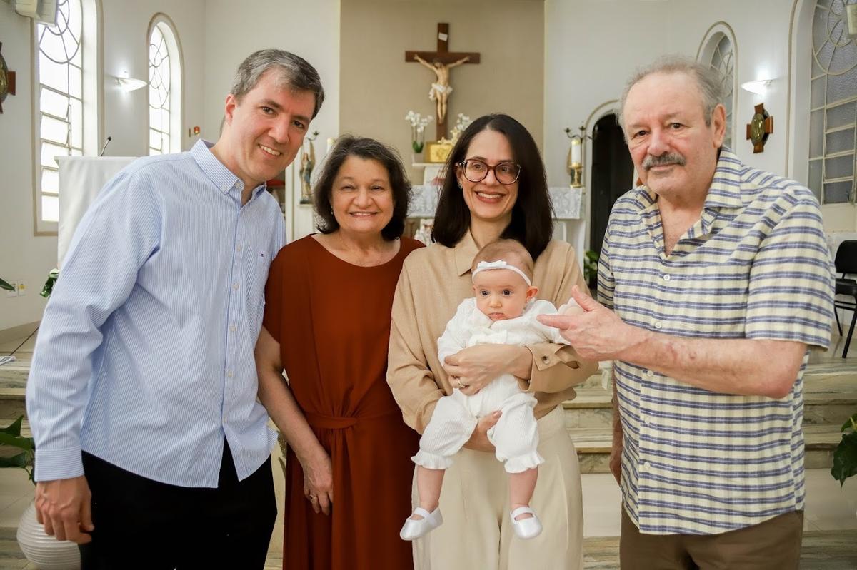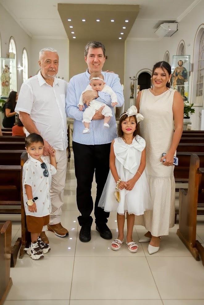 A pequena Sofia Oliveira Paiva, nascida em abril em Joinville (SC), foi batizada em uma cerimônia emocionante pelo Padre Ildomar Pereira da Fonseca, capelão da Santa Casa. Filha de Thauana Oliveira, médica reumatologista, e Omir Paiva, médico radiologista, a menina trouxe ainda mais alegria à família, cujas raízes maternas vêm de Montes Claros. A comemoração seguiu na casa da bisavó Irani Antunes, cuidadosamente organizada pelo Lourenço Buffet, com carinho e atenção a cada detalhe. Um momento de afeto, sorrisos e memórias que ficarão guardadas no coração de todos.